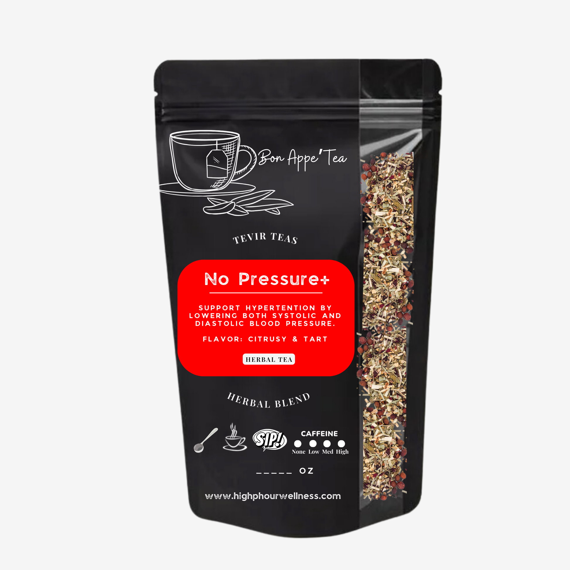 Our 'No Pressure' blend is crafted to help stabilize and harmonize elevated blood pressure levels. This thoughtfully curated mix of herbs works synergistically to promote heart health by reducing both systolic and diastolic readings. Try sipping on an 8 oz cup, and check your blood pressure before and after, you might be amazed at the difference!